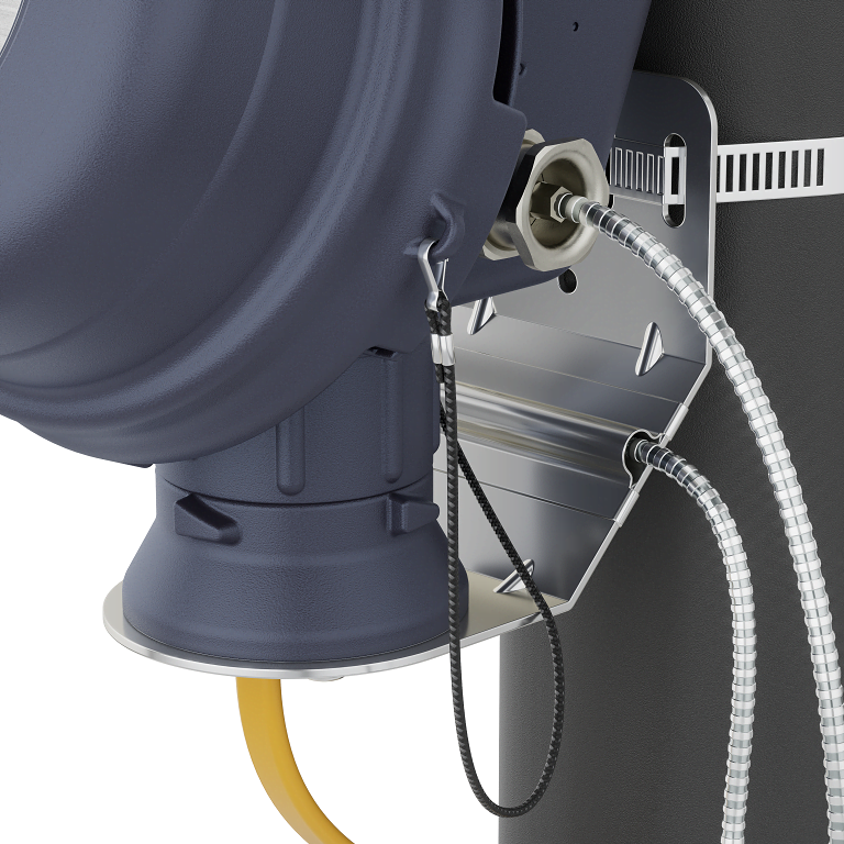 • Механический термостат на кронштейне с капиллярным датчиком температуры в защитном металлорукаве, кабельным вводом М20, устройством ввода под теплоизоляцию и блоком